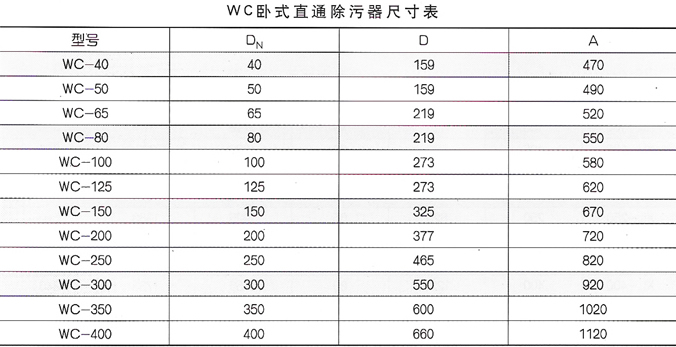 本臥式除污器為直通式除污器,其工作原理與立式除污器相同,水從一側(cè)接管進(jìn)入筒體內(nèi),另一側(cè)接管與筒體內(nèi)的濾網(wǎng)孔管相連,過濾網(wǎng)孔管是由許多直徑為 3.5 毫米的小孔構(gòu)成。水中的雜質(zhì)顆粒被網(wǎng)孔濾除,積存在筒體的底部,無雜質(zhì)顆粒的水經(jīng)過濾網(wǎng)孔從改廁接管流出。