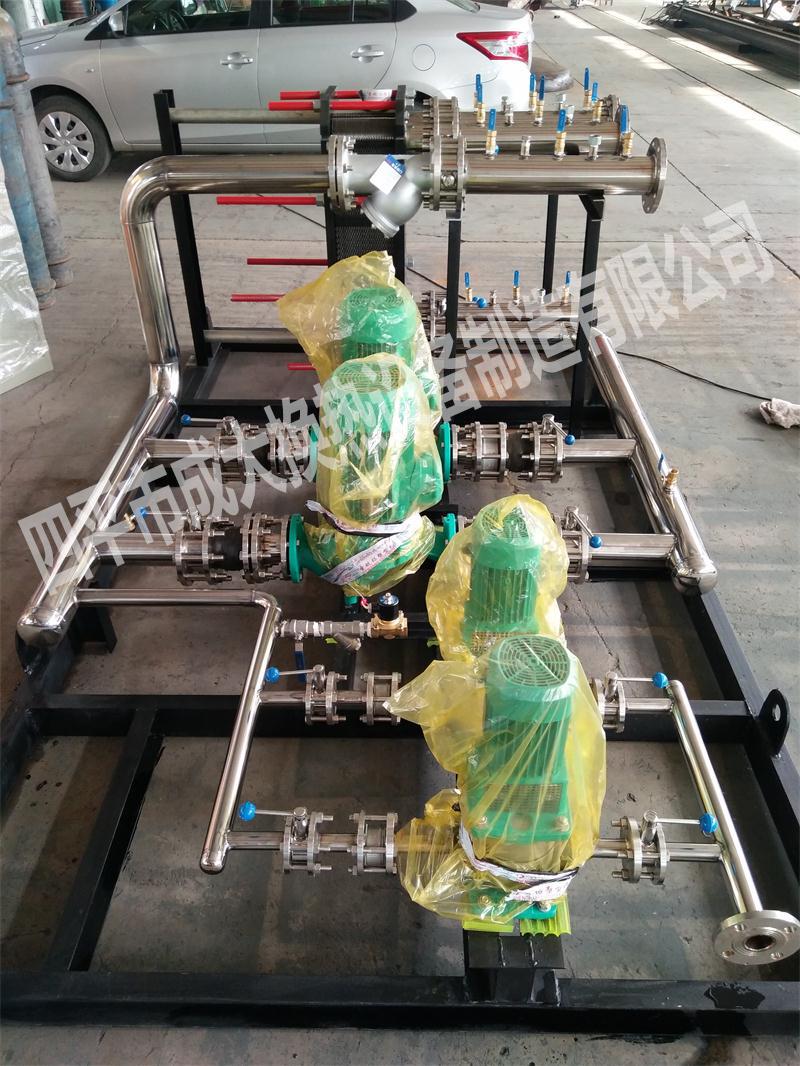 Our company's heat exchanger unit is a complete set of district heating equipment which integrates heat exchanger, circulating pump, make-up water pump, thermometer, pressure gauge, various sensors, pipelines and valves, and industrial control, and is equipped with a make-up water system, constant pressure system, water treatment system, variable frequency flow control system, calorimeter and network control communication system. Our company is responsible for the selection of pumps, valves and instruments, the welding of pipeline flanges and the on-site installation and debugging of electrical control. The units of various specifications produced by our company, with the capacity from 0.2MW to 15MW, are designed by standard modules and freely combined to meet the requirements of users under different working conditions, so as to provide users with more reasonable and applicable units. On the premise of meeting users' requirements, we will try our best to save equipment investment for users.